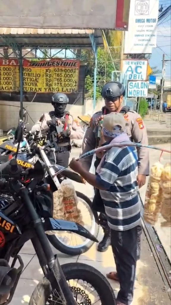 Depok – Aksi humanis ditunjukkan oleh Tim Patroli Perintis Presisi (3P) saat melaksanakan patroli di wilayah Depok. Kegiatan tersebut berlangsung di Jalan Kemakmuran, Depok 2, tepatnya di pertigaan Masjid Alhuda.