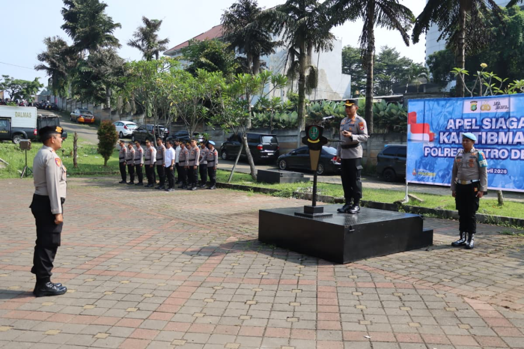 Depok – Kapolres Metro Depok, Kombes Pol Abdul Waras, S.I.K., memimpin pelaksanaan Apel Siaga Kamtibmas pada Selasa (07/04/2026) pukul 09.00 WIB di Lapangan Apel Polres Metro Depok. Kegiatan ini diikuti oleh berbagai elemen masyarakat, mulai dari organisasi masyarakat, komunitas ojek online Kota Depok, hingga kelompok Solidaritas Emak-Emak Kota Depok yang turut ambil bagian dalam upaya menjaga keamanan wilayah.