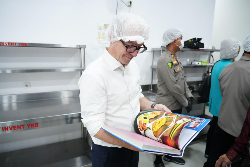Dalam rangkaian kunjungan diplomatik Delegasi Kedutaan Besar Prancis ke Satuan Pelayanan Pemenuhan Gizi (SPPG) Mabes Polri 1 Pejaten, Polri menyerahkan Buku Menu MBG “Rasa Bhayangkara Nusantara” kepada delegasi sebagai bagian dari kegiatan peninjauan pelaksanaan Program Makan Bergizi Gratis (MBG). Penyerahan buku ini menjadi simbol komitmen Polri dalam mendukung Asta Cita Presiden Prabowo Subianto, khususnya pembangunan sumber daya manusia melalui pemenuhan gizi anak bangsa.
