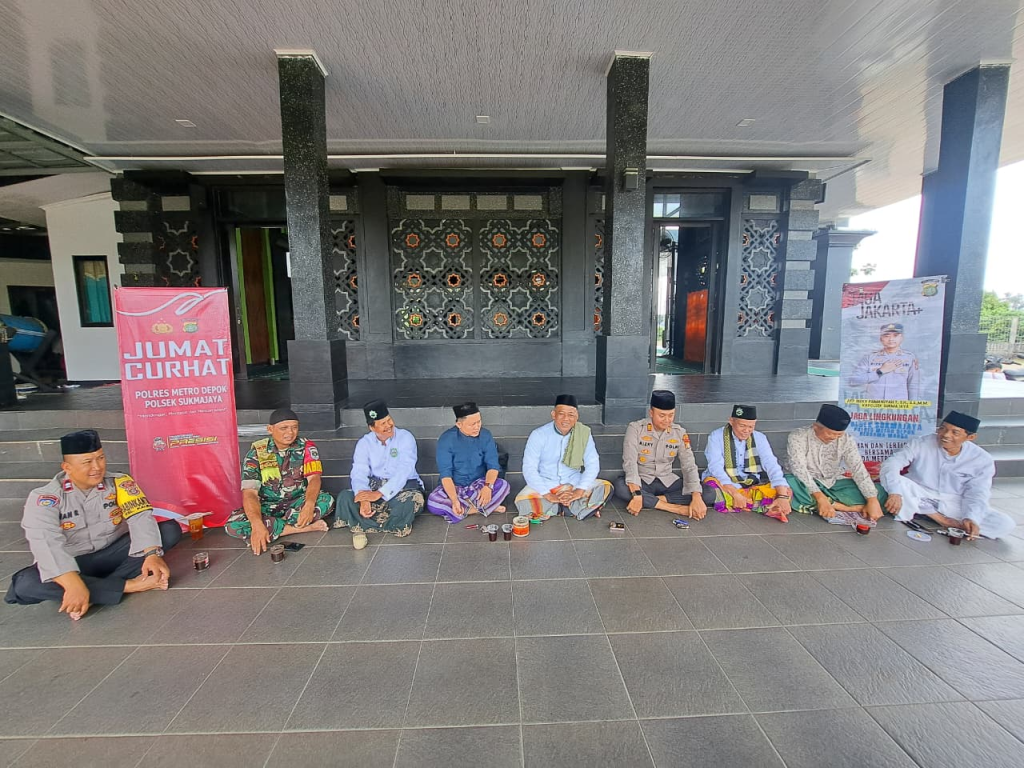 Depok – Polsek Sukmajaya kembali menggelar rangkaian kegiatan Jum’at Keliling, Jum’at Curhat dan Ngopi Kamtibmas yang dipimpin langsung oleh Kapolsek Sukmajaya AKP Rizky Firmansyah T, S.H., S.S., M.M. Kegiatan berlangsung pada Jum’at, 21 November 2025 bertempat di Masjid Hajar Aswad, Setu Cilodong, Kelurahan Kalibaru, Kecamatan Cilodong, Kota Depok, mulai pukul 11.30 s/d 14.00 WIB.