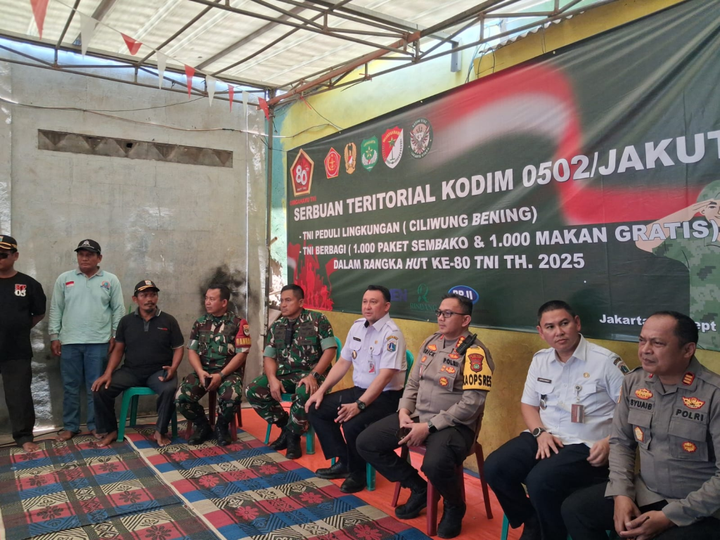 Jakarta Utara – Dalam rangka memperingati HUT ke-80 TNI, Kodim 0502/Jakarta Utara bersama Forkopimko Kota Administrasi Jakarta Utara menggelar kegiatan Serbuan Teritorial berupa pembagian 150 paket sembako dan 150 makanan siap santap bagi para pengungsi korban kebakaran di Jalan Cakung Drainase RT 05/11, Kelurahan Semper Timur, Kecamatan Cilincing, Rabu (24/9/2025).