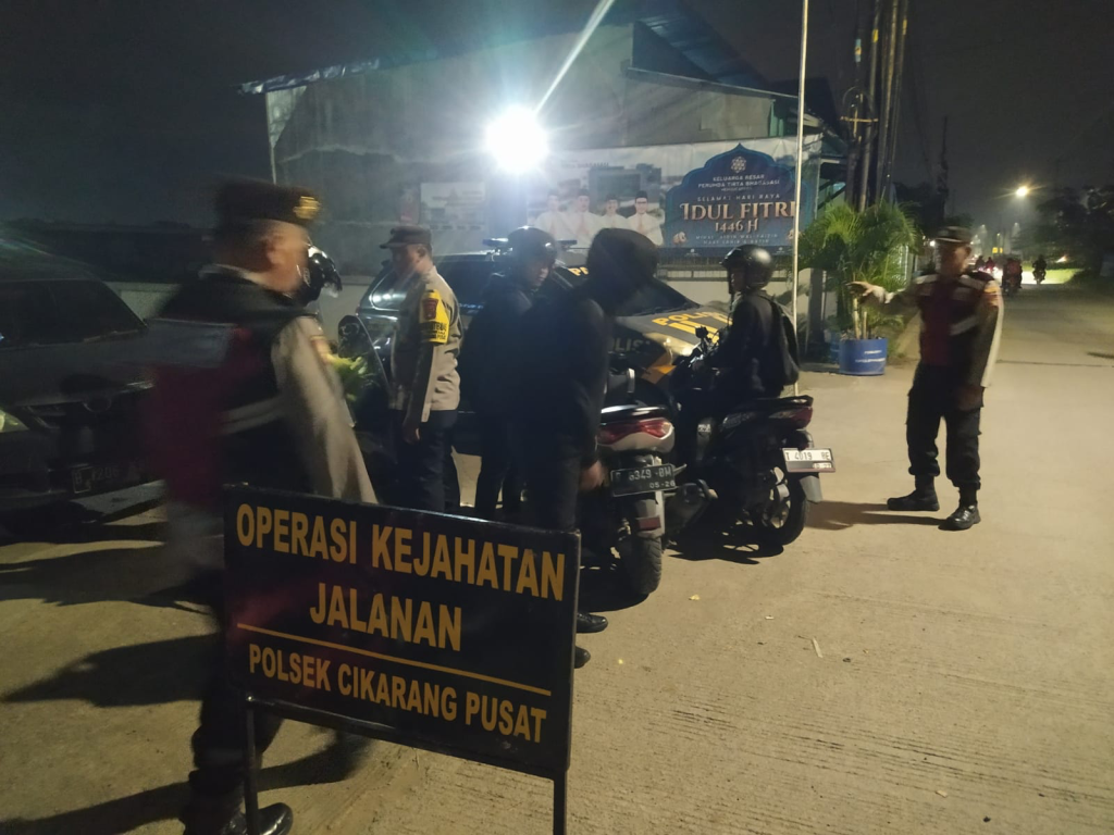 Senin malam, 23 September 2025, tepat pukul 23.40 WIB, Polsek Cikarang Pusat menggelar Operasi Kejahatan Jalanan (OKJ) untuk mengantisipasi tindak kejahatan berupa curat, curas, dan curanmor (3C) di wilayah hukumnya. Operasi ini dipimpin langsung oleh Iptu Akhmad Surbakti, SH., dengan melibatkan personel dari berbagai satuan seperti Reskrim, Samapta, Binmas, dan Lantas. Kegiatan berlangsung intensif dengan sasaran kendaraan bermotor yang melintas di kawasan tersebut.